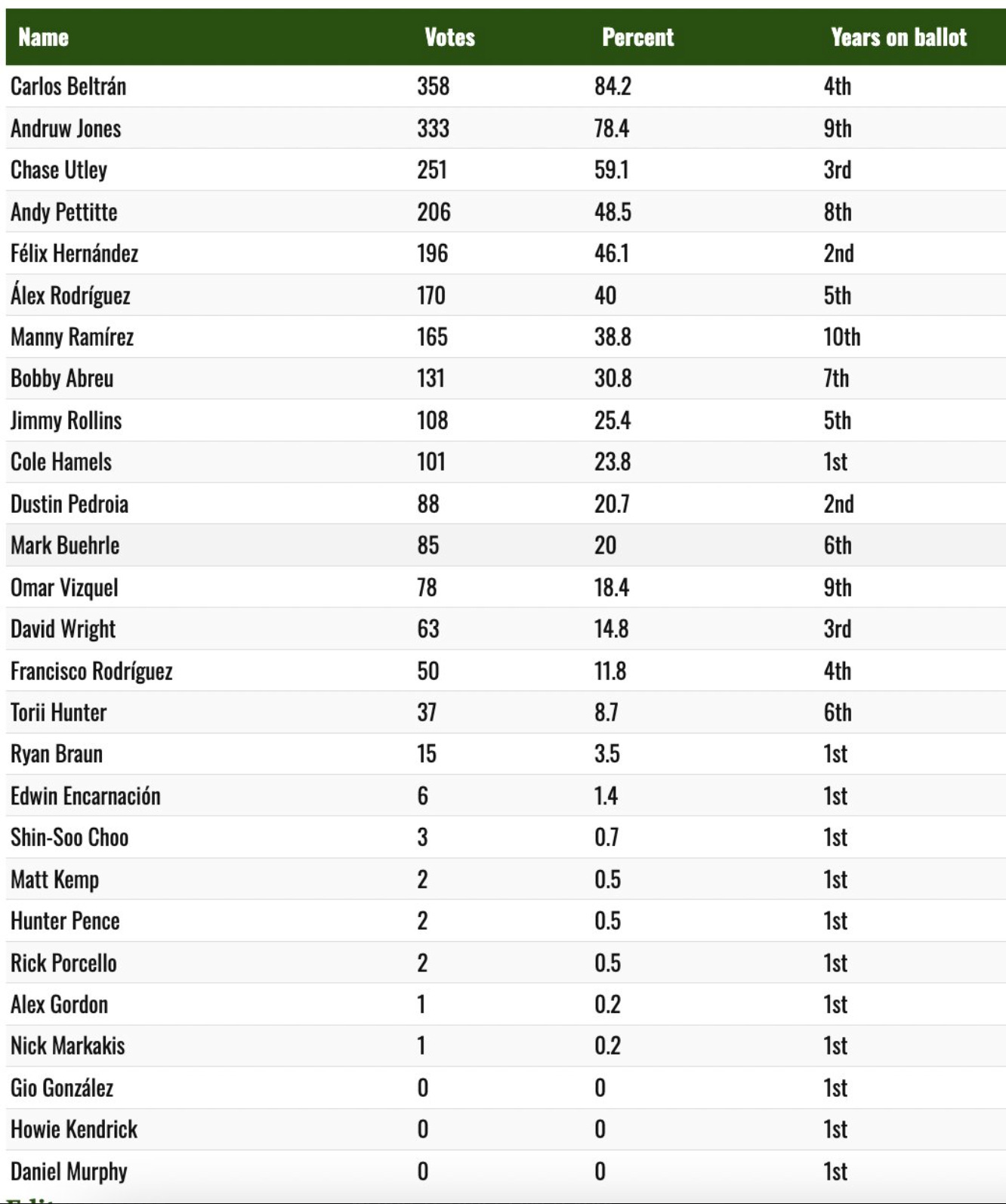 Beltrán received 84.2 percent of the vote in his fourth year of eligibility. He received 70.3 percent of the vote in 2025, falling 4.7 percent short of the required 75 percent, which made it seem all but a certainty he’d be elected this winter.