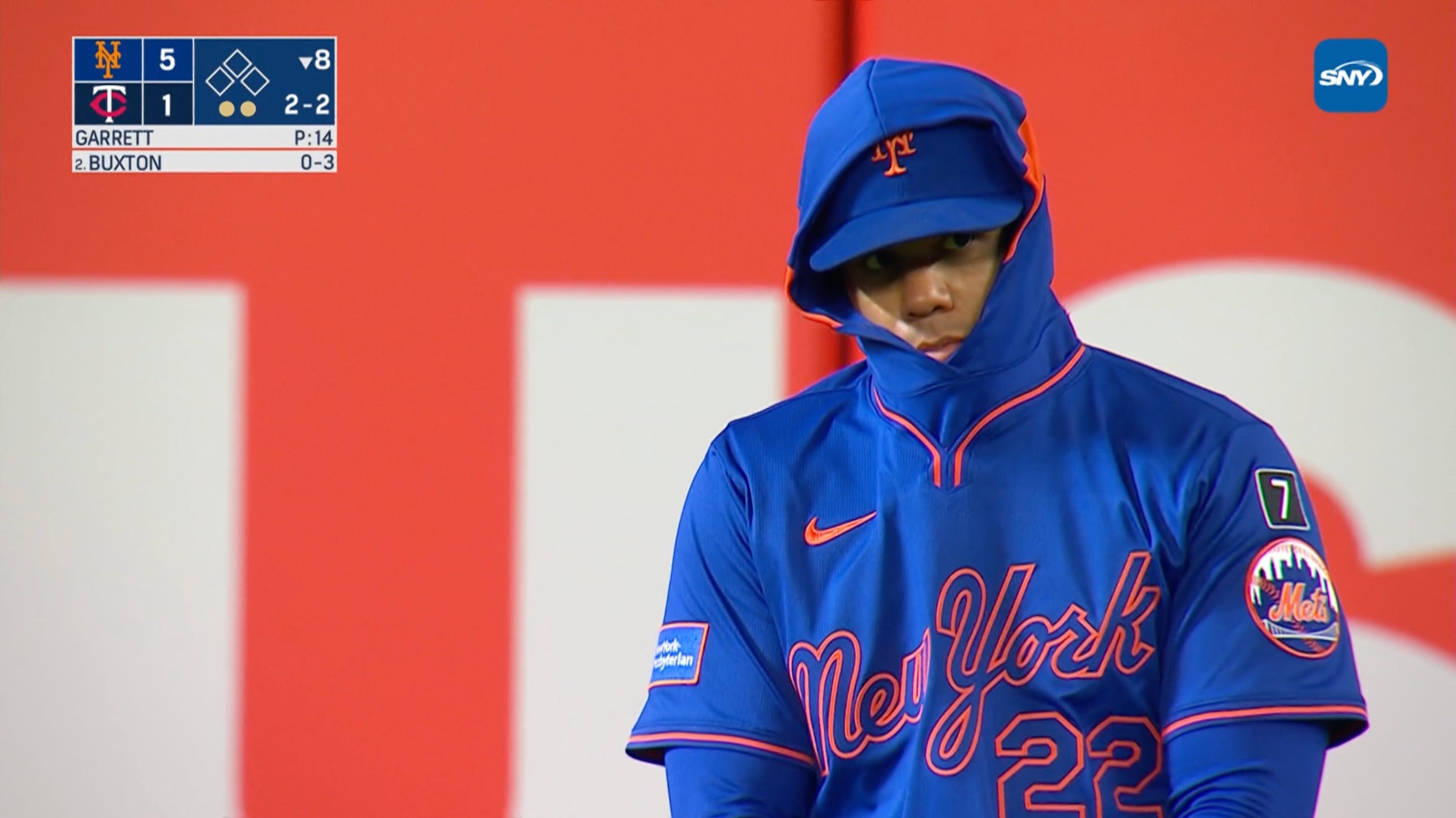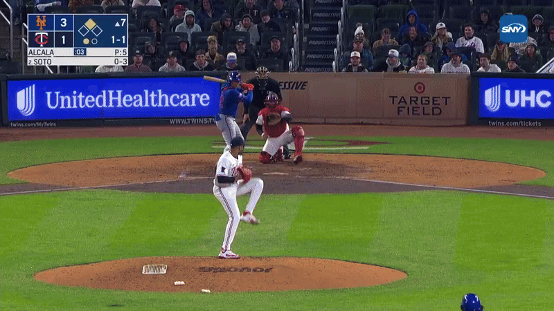 Dawning a hoodie as the right fielder played in 40-degree weather yet again in this early season, Soto didn’t miss as he crushed a 1-1 change-up high in the cold Minnesota sky and just over the tall fence in right field for a two-run homer. The long ball was Soto’s second of the season, his first hit with a runner in scoring position, and the insurance the Mets needed to bust this game open in the 7th inning.
