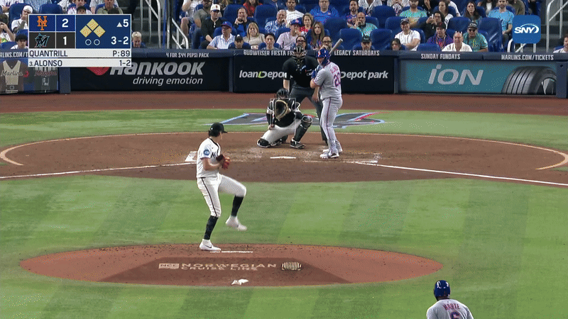 After Jose Siri hit an absolute rope to deep right-center field for a double to give New York the lead, the Mets kept the pressure on Cal Quantrill and the Marlins by loading the bases with nobody out and Pete Alonso coming up to the dish. This had to be the moment where this offense finally came to life – and boy did they.