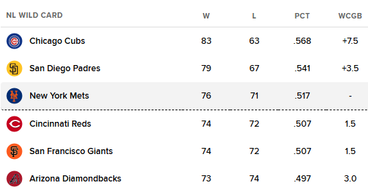 The Wild Card lead is down to just 1.5 games with the teams chasing them not playing.