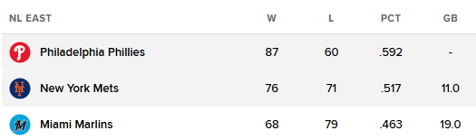 After getting swept in a four-game series by the Phillies this week, the Mets now sit 11 games behind them for the division lead. While they are not mathematically out of the division race yet, for all intents and purposes, the crown belongs to Philadelphia.