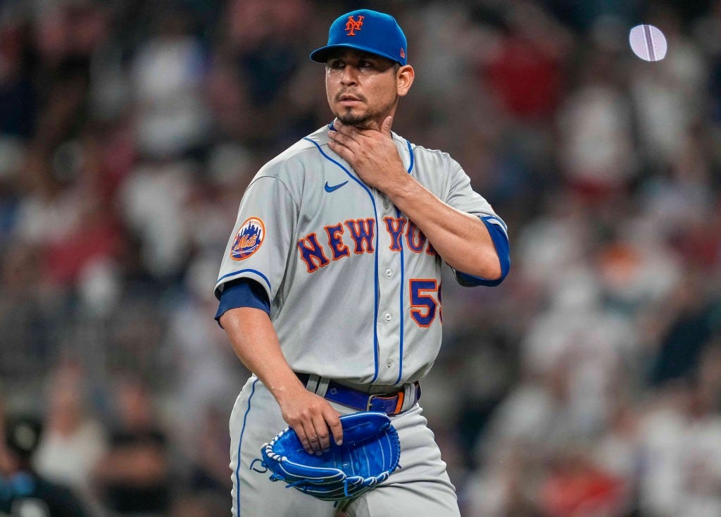 To be fair, Carlos Carrasco was really good over the first five innings. He allowed only an Ozzie Albies solo homer in the second inning but was otherwise solid for 15 outs. But he couldn’t even sniff the 16th out in the sixth and got absolutely ambushed by Austin Riley and Sean Murphy, ending his night and in-turn effectively ending the Mets night as well.