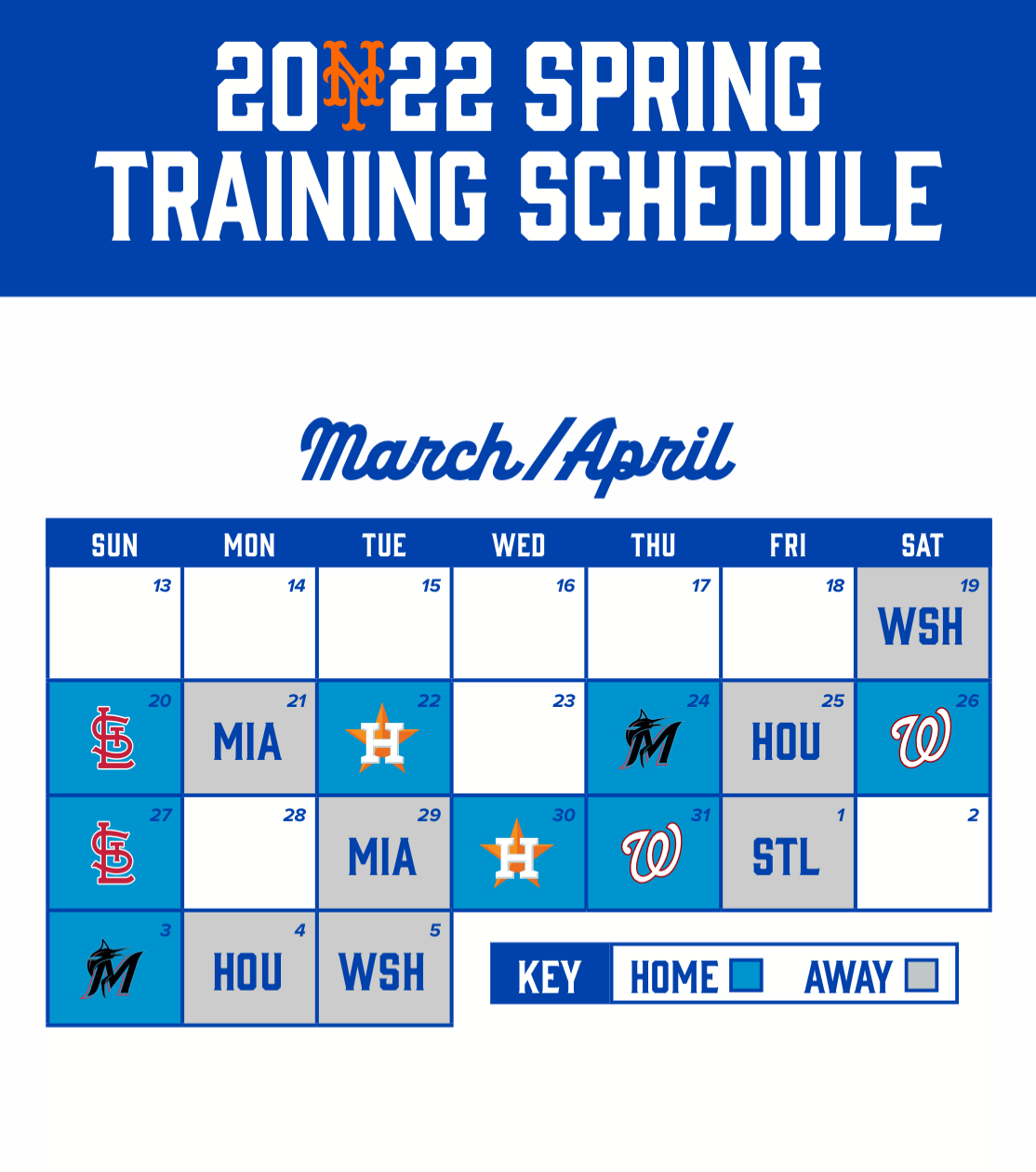 Here is the revised 15-game spring training schedule for the Mets: