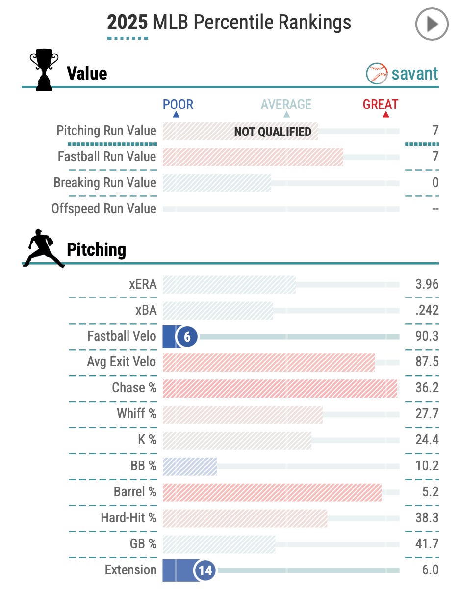 The biggest knocks against Coulombe the last few seasons have to be his steadily declining K rate and average fastball velo. Though never a power pitcher by any means, Coulombe has lost a full tick off his fastball over the last two seasons. The results of that velo drop speak for themselves: he allowed a much higher batting average and BABIP in 2025 than in 2024. However, that ‘much higher average’ was still just .203 (up from .149); the .259 allowed BABIP (up from .179) is the more concerning inflation of the two, but still only so much considering the results.