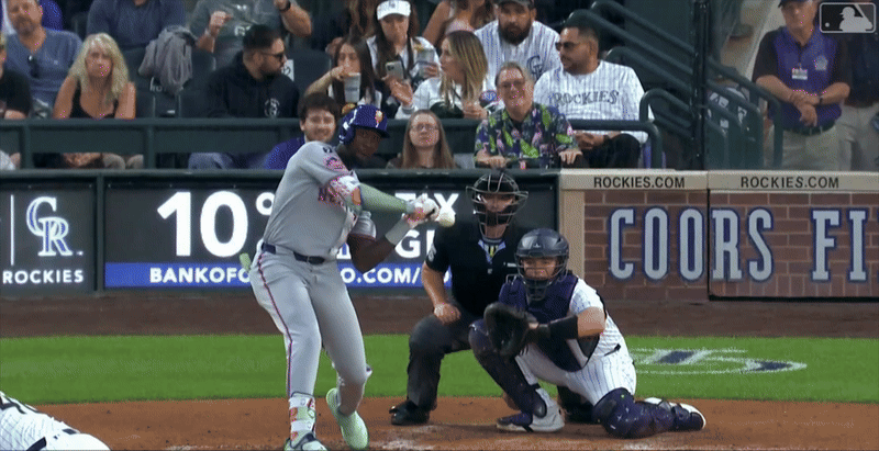That potential was on full display last night when he popped a 456-foot bomb to the second deck at Coors Field for a solo homer early in the game.