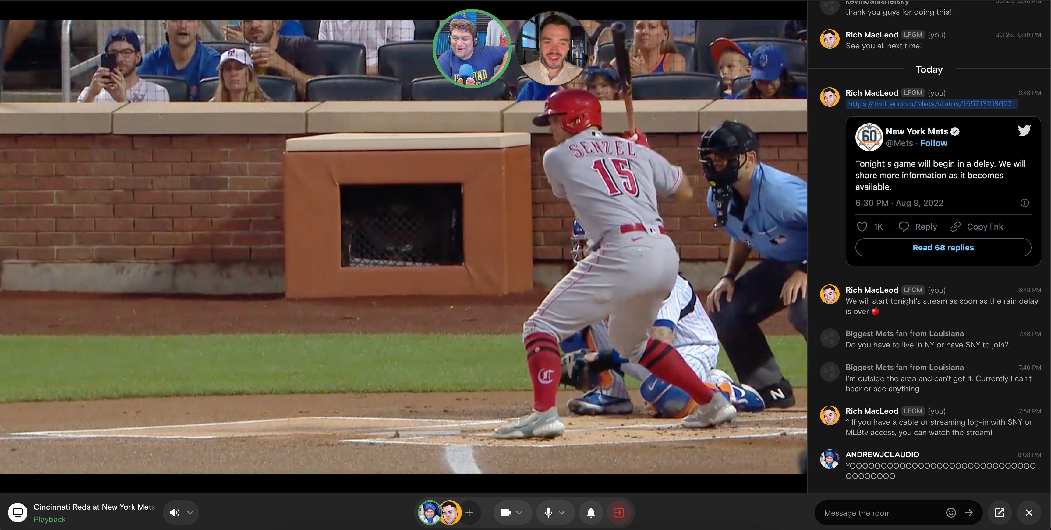 We will be broadcasting for the duration of Mets/Braves as New York looks to get back on track and extend their NL East lead. We’ll have trivia and discuss all kinds of Mets and baseball topics as we react to the game in real-time, as it happens on the screen alongside us. Fans will also be able to interact with us, ask questions and react themselves in the live chat feature on the screen.