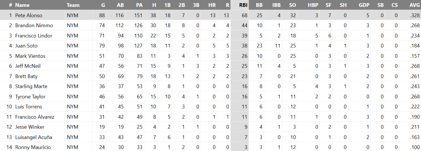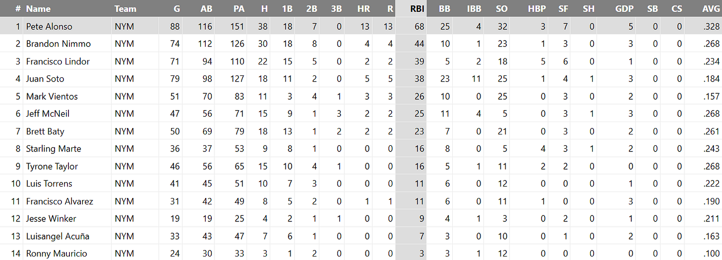 Though the exceptional season he’s having was momentarily derailed by an atrocious July (a likely thing to happen to most of this team), the bet Pete Alonso made on himself this winter has already proven smart. Through 116 games, Pete’s bat has been arguably the most regularly valuable one in the Mets’ lineup: he’s driven in 92 runs with 26 homers and 27 doubles, good for a 143 OPS+ and 2.7 bWAR.