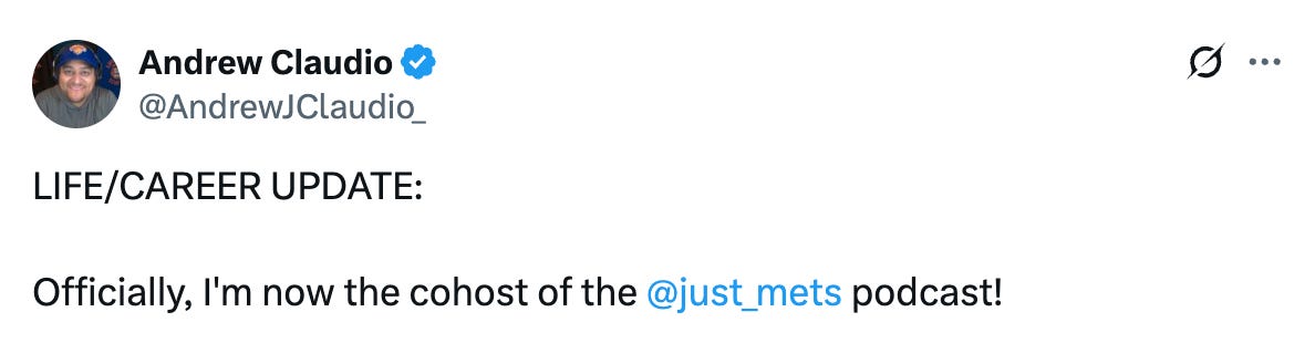Andrew – who you likely know from Knicks Film School & Mets Therapy – has been a friend of Just Mets for years, and we couldn’t be more excited to have him join the family.