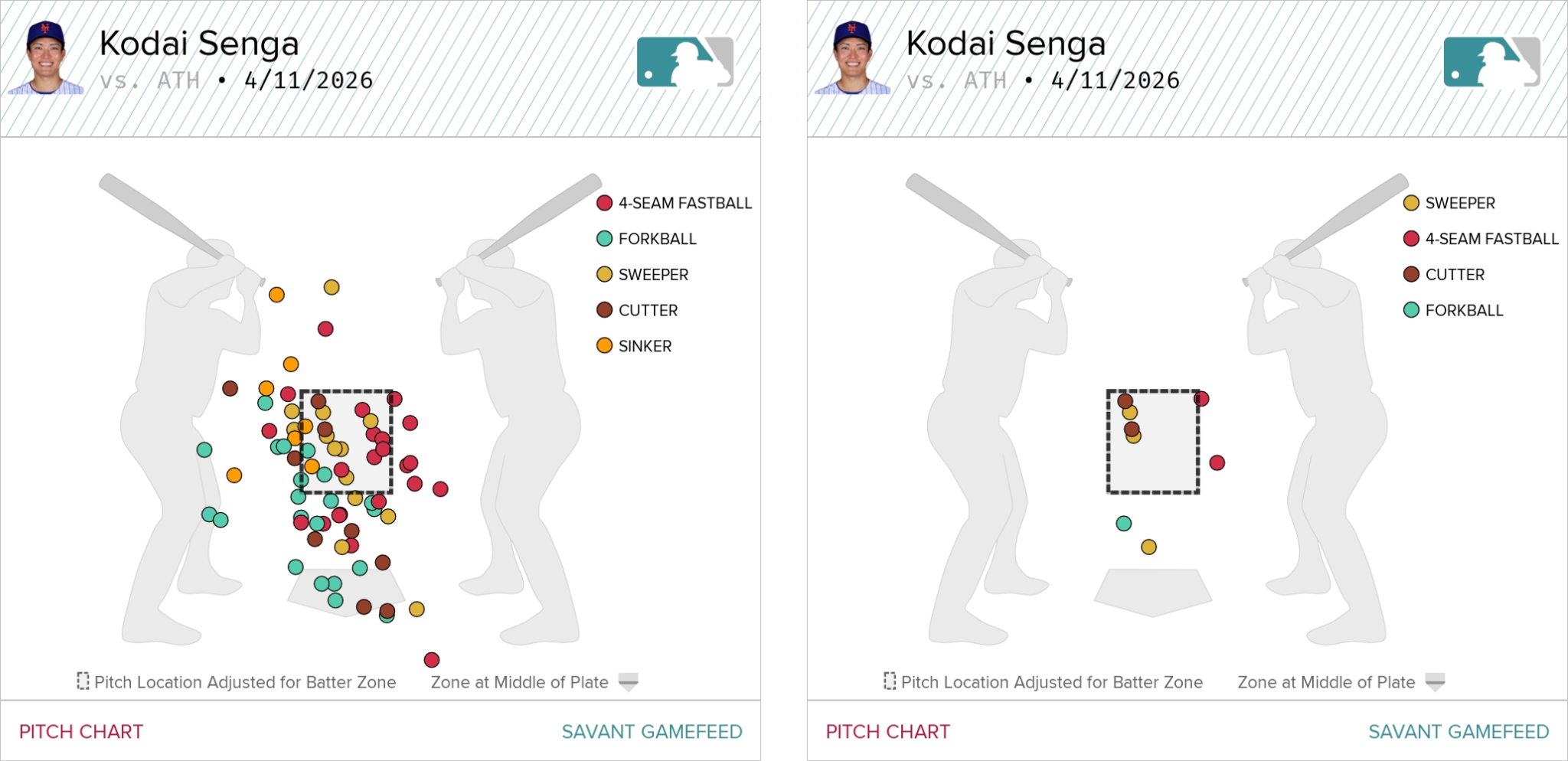 Senga’s fastball and sweeper were both supremely hittable yesterday, and looking at the pitch chart, it’s easy to see why: he was leaving recognizable pitches in a hot part of the zone.