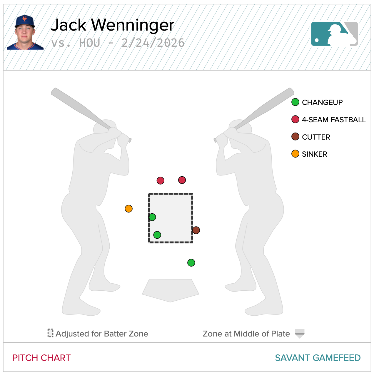 Wenninger ran into some location issues yesterday, but nothing about his pitch map is all that concerning — if anything, it looks very similar to a typical Clay Holmes start chart. None of the free passes he issued resulted in any runs crossing the plate, and he was able to successfully navigate out of any corners he worked himself into, and he emerged from his first spring battle victorious, a golden goose egg left behind in the run column. That’s also worthy of praise and suggests that this kid has the stuff to stick around for a while once he finally gets his turn.