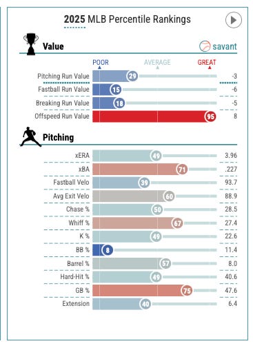 The 2025 Mets season really is an excellent case study in just how quickly things can change during a baseball season. It was a tale of two years for the entire team, but especially for Senga: before he hurt his hamstring in mid-June, he had been nothing short of disgusting on the mound. Through his first 13 starts, he posted an MLB-leading 1.47 ERA with a 1.13 WHIP over 77.2 innings of work. Senga was striking hitters out at a 23.4% clip, down from his 2023 baseline of 29.1% but accompanied by an improvement in walk rate and a near-90% strand rate.