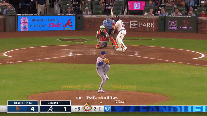 To Reed’s credit he was able to retire the next two batters without allowing a run, giving him a clear pathway to getting out of trouble and (likely) carrying the Mets to a bounce back victory. After Marcell Ozuna somehow managed to foul off a nasty offspeed pitch with two strikes, he got a splitter on the inside part of the plate that he was able to turn on and rip down the left field line.
