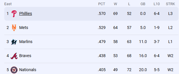 This was their third consecutive home series loss and the Mets are now just seven games over .500, their lowest mark since April 19