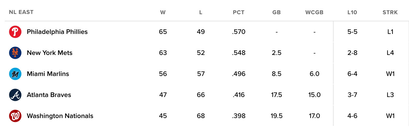 As such, the Mets are still 2.5 games out of first place in the National League East.