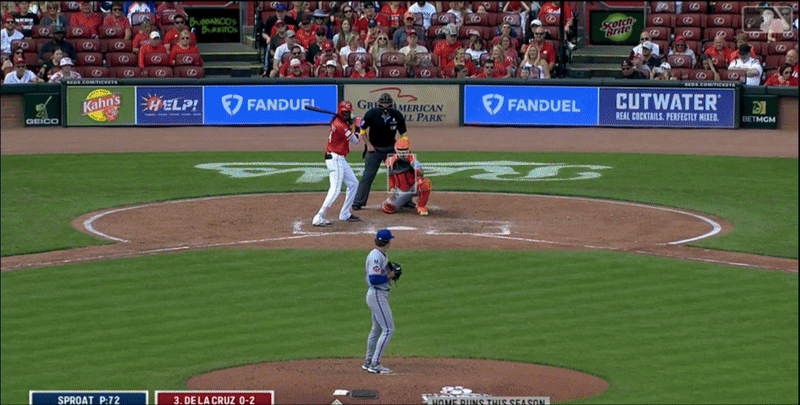 In a tie game in the 6th inning, Elly De La Cruz ripped a double to the game that plated Noelvi Marte to give the Reds the lead. De La Cruz scampered to 3rd on the throw home, which forced the Mets to bring the infield in with one out. This gave the Reds a 2-1 lead and they never looked back from there.