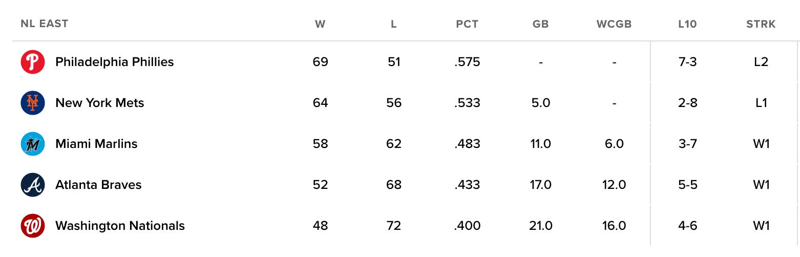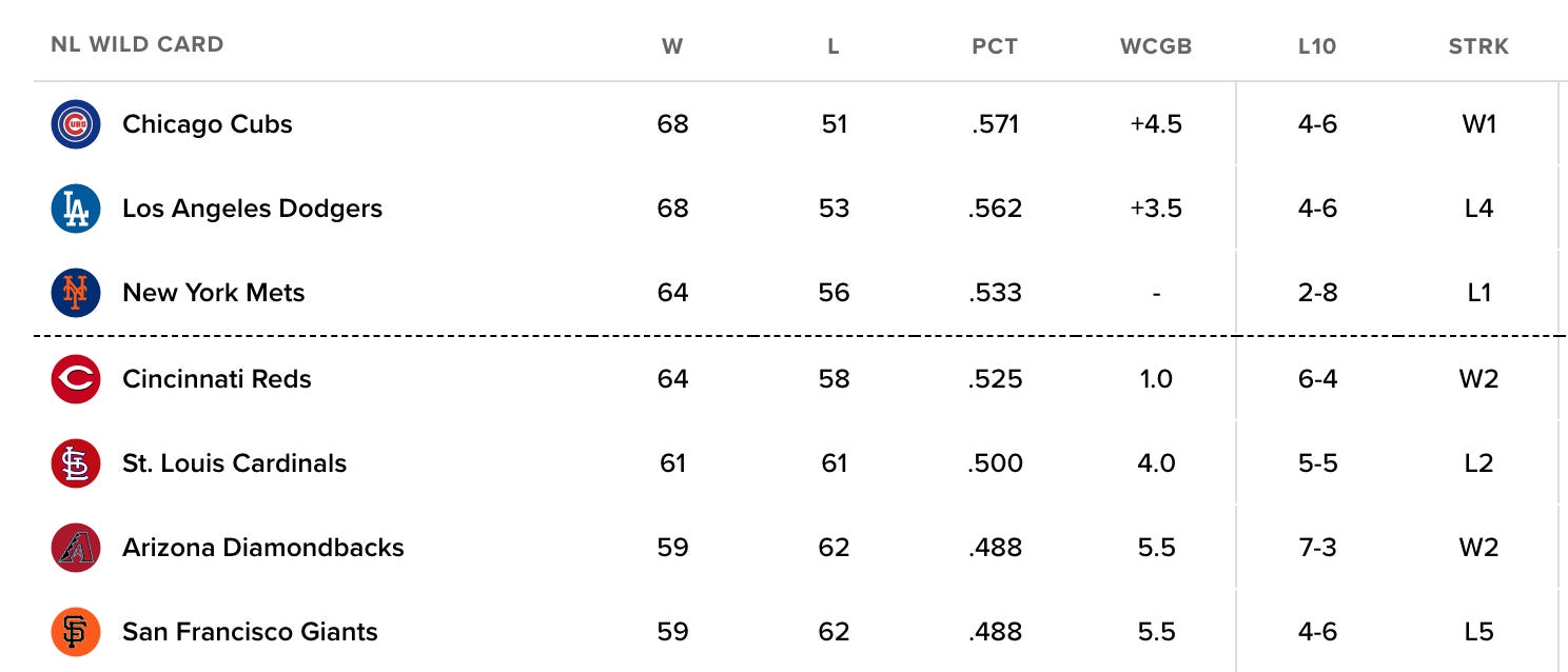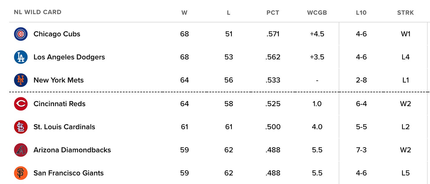 Following Wednesday’s humiliating beatdown, the Mets have now lost 12 of their last 14. Meanwhile, the Phillies were shut out by the Reds on Wednesday. As a result, the Mets are still five games back of Philadelphia for the NL East lead. However, Cincinnati is now just one game back of the final Wild Card spot in the National League.