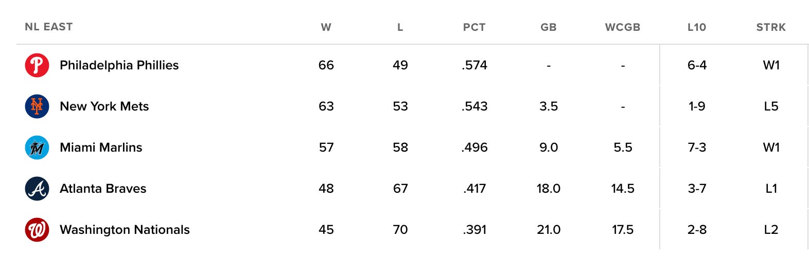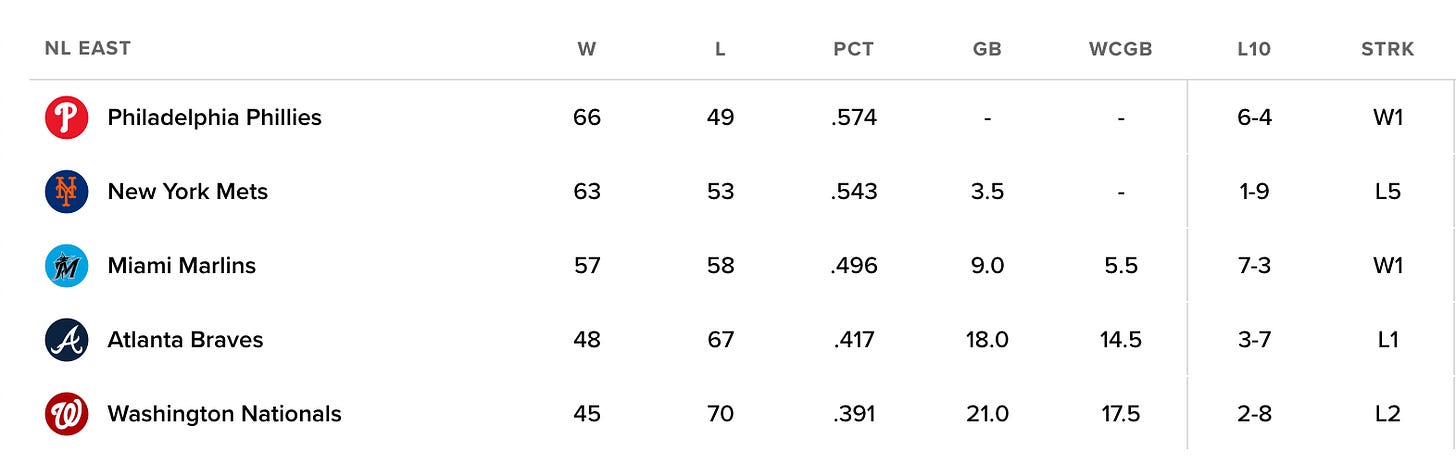 As a result, New York is now 3.5 games out of first place in the National League East.
