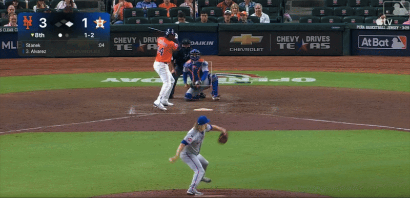 However, arguably the more important play of the game— certainly the key defining point of the game— came in the eighth inning. With one out, a runner on first and slugger Yordan Alvarez up at the plate, the Astros had a chance to bring home the tying runs.