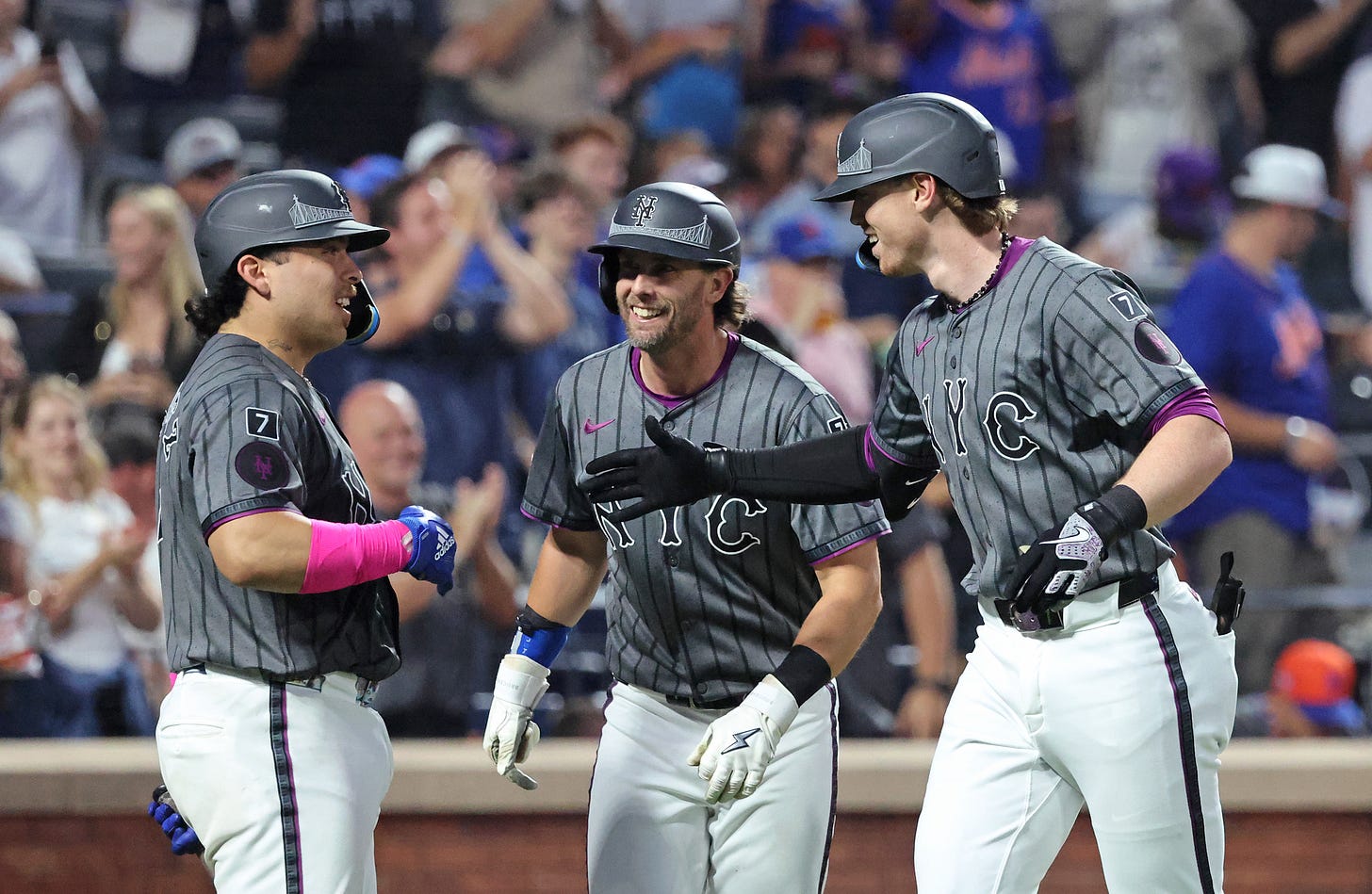 The Mets rallied for five runs in the seventh and eighth innings, and took the lead in the eighth when O’Hoppe missed a catch on a throw to the plate by Yoan Moncada which allowed Brett Baty to score