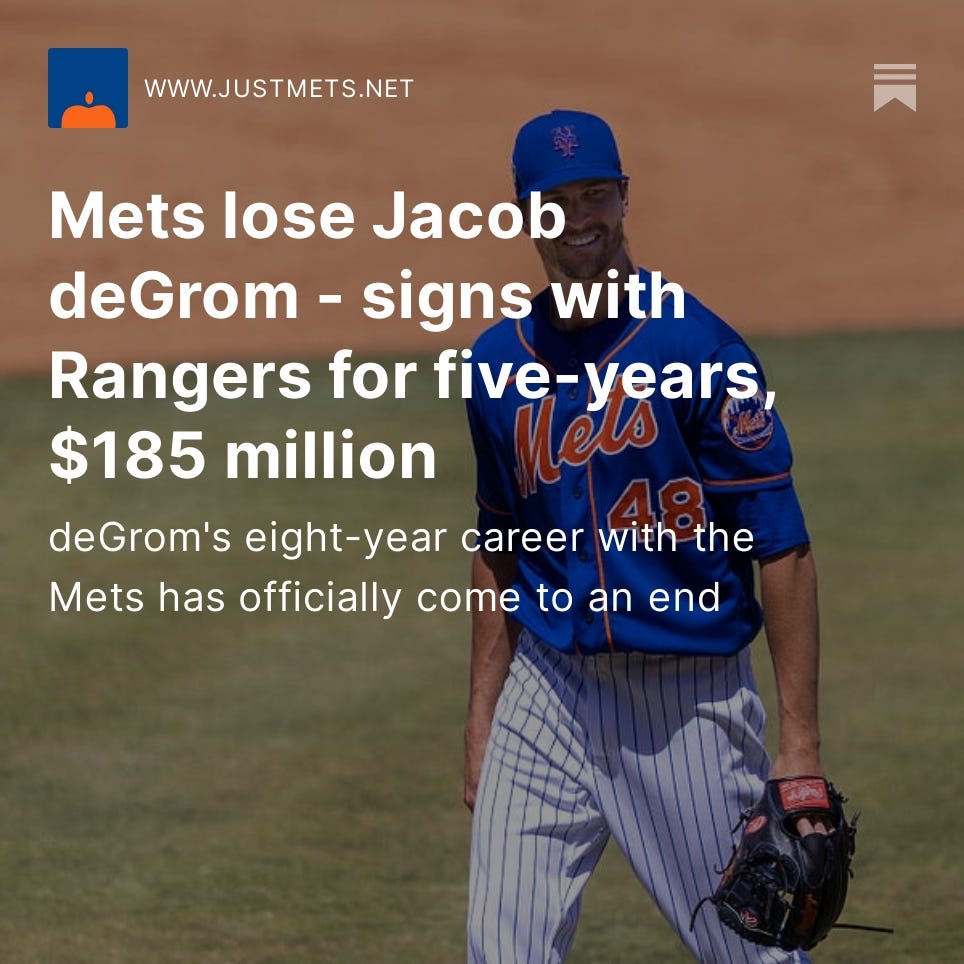 The Mets’ final offer to deGrom was for three years and $120 million (New York Post) - he accepted a five-year contract and $185 million guaranteed with a sixth-year conditional option to make the deal worth $222 million (ESPN)